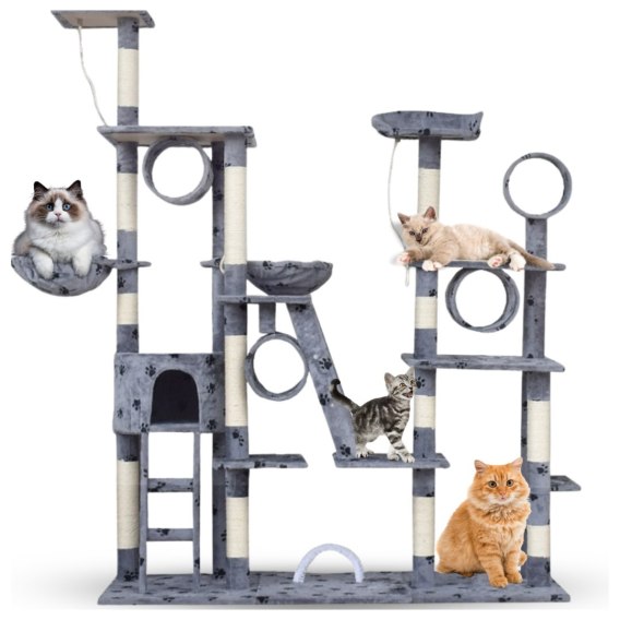 A może Twoje koty potrzebują osobnych miejsc do zabawy i odpoczynku? Nasz drapak XXL to idealne centrum aktywności, które zaspokoi potrzeby każdego kota. Dzięki rozbudowanej konstrukcji z 9 poziomami, licznym legowiskom, hamakom i tubom, Twój futrzany przyjaciel zyska własną, nieograniczoną przestrzeń do zabawy i relaksu. To idealne rozwiązanie dla dużych kotów, aktywnych pupili oraz domów z wieloma czworonogami, a unikalny motyw łapek doda stylu Twojemu wnętrzu.
