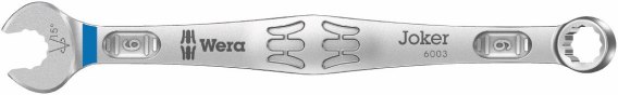 Podczas kilkukrotnie powtarzanych obrotów o 180° wokół osi wzdłużnej możliwe jest osadzenia klucza co 15° na nakrętce lub łbie śruby. Klucz Joker 6003 z przemyślaną geometrią szczęk znacznie rozszerza zakres zastosowań w ograniczonych przestrzeniach. Joker 6003 automatycznie odnajduje odpowiedni punkt przyłożenia po każdym obrocie. Smukła, a jednocześnie wytrzymała strona oczkowa klucza jest odchylona pod kątem 15° w stosunku do osi narzędzia.