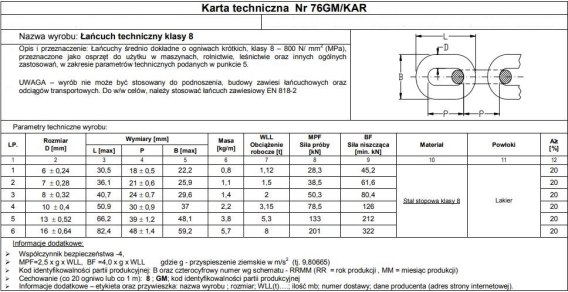 ŁAŃCUCH TECHNICZNY CZARNY 10MM G8 WLL 3.15T