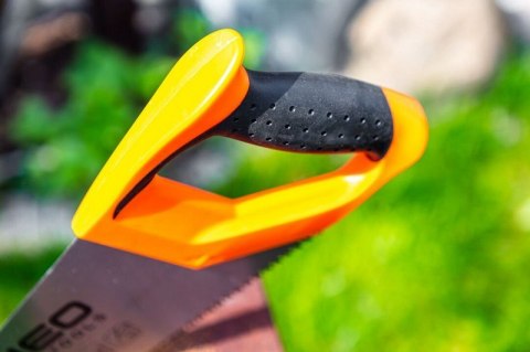 Piła płatnica NEO (nr ref. 41-136) o długości ostrza 450 mm. Lekka, a zarazem wytrzymała konstrukcja, zapewniająca efektywne i szybkie cięcie. Trójstronnie ostrzone i hartowane indukcyjnie zęby znacząco obniżają opory cięcia oraz ułatwiają przecinanie drewna wzdłuż słojów. Uzębienie 7 zębów na cal umożliwia szybkie, zgrubne cięcie. Duża sprężystość stali zapewnia długą żywotność. Ergonomiczny uchwyt pokryty antypoślizgowym materiałem umożliwia bezpieczne i stabilne prowadzenie piły podczas cięcia. Na krawędzi piły znajduje się praktyczna podziałka.