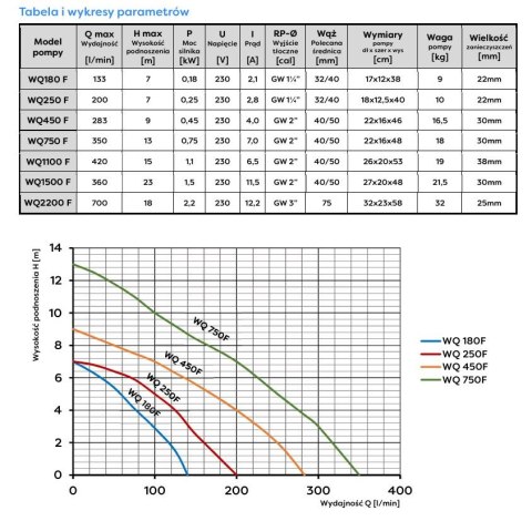 POMPA ZATAPIALNA WQ 450F 230V ŚCIEKOWA