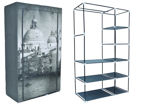 Lekkie szafy tekstylne to proste i ekonomiczne rozwiązanie problemu przechowywania odzieży. Szafy mają metalowy stelaż z łącznikami z tworzywa sztucznego, są proste i szybkie w montażu oraz dostępne w wielu modnych kolorach i wzorach. Materiałowa garderoba sprawdzi się też u osób często zmieniających miejsce zamieszkania - składa się ją w kilka minut. Dzięki zamkom błyskawicznym na froncie szafy, poszczególne części można otwierać i zamykać niezależnie.