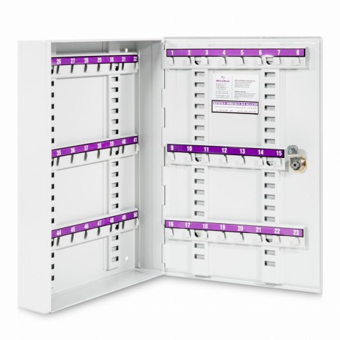 Bezpieczne przechowywanie kluczy: Nasza szafka na klucze zapewnia bezpieczne miejsce do przechowywania aż 50 sztuk kluczy, co ułatwia organizację i kontrolę nad nimi.