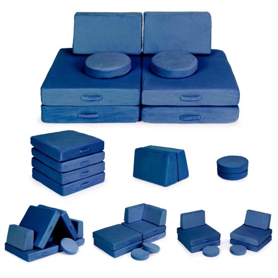 Sofa modułowa duża składana dla dzieci DIY 8 miękkich poduch - niebieska ECOTOYS