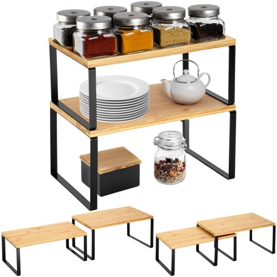 Odkryj elegancki i funkcjonalny zestaw półek Ginger, idealny dodatek do Twojej kuchni. Ten zespół dwóch półek, został stworzony z myślą o osobach poszukujących połączenia praktyczności z nowoczesnym wyglądem. Zestaw charakteryzuje się doskonałą jakością materiałów oraz oferuje szerokie możliwości aranżacyjne. Półki, wykonane z ekologicznego drewna bambusowego oraz odpornego na uszkodzenia stelaża stalowego pokrytego matową czernią metodą malowania proszkowego, wnoszą do wnętrz nutę elegancji. Półki mają tę samą szerokość, jedna z nich jest jednak nieco wyższa, dzięki czemu stworzysz niezliczoną liczbę aranżacji!