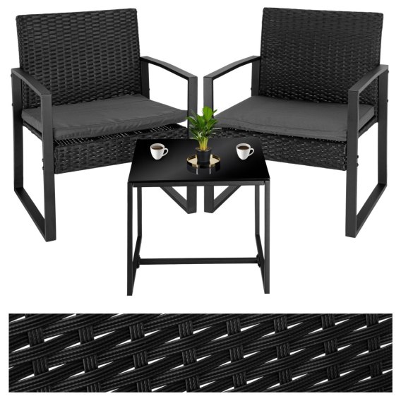 Kompaktowy zestaw dwóch krzeseł i stolika pozwala na stworzenie przytulnego kącika kawowego bez względu na metraż. Zestaw został solidnie wykonany z technorattanu i stali malowanej proszkowo. Wygodne poduszki zapewniają komfort nawet podczas długiego wypoczynku. Zestaw Coffi łączy nowoczesny design z praktycznością - to inwestycja w codzienny relaks, która się opłaca.