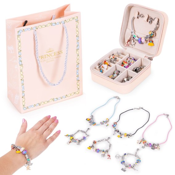 Zestaw do robienia bransoletek naszyjników charmsy koraliki 66 elementów + organizer i torba