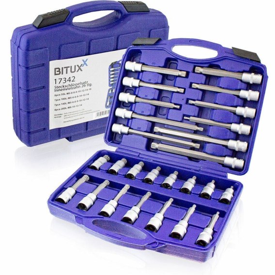 Zestaw kluczy nasadowych wielozębnych z walizką 26el.