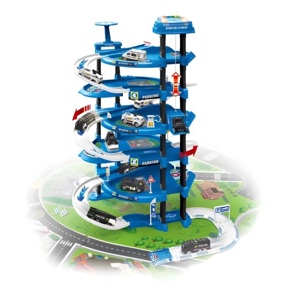 Garaż samochodowy XXL komenda policji 5 poziomów + mata z miastem 82 elementy