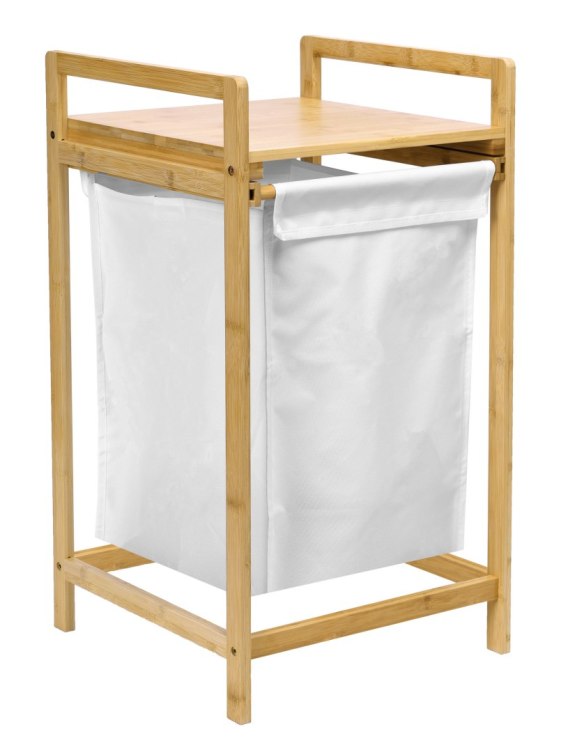 Bambusowy kosz na pranie Hanoi to estetyczny i pojemny kosz, który pomieści mnóstwo odzieży. Wykonany ze szlifowanego bambusa, nie ma ostrych krawędzi, jest przyjemnie gładki i starannie wykończony. Górna półka może służyć jako miejsce na akcesoria łazienkowe, środki piorące, a także jako miejsce na dekoracje czy świece zapachowe. Kosz posiada szyny, które ułatwiają napełnianie i opróżnianie materiałowego worka. Dzięki nim cały worek można wysunąć i przetransportować. Materiał przypięty jest na rzep, można go zdjąć i wyprać. Hanoi złożysz bez wiercenia i specjalistycznych narzędzi. Montaż zajmuje dosłownie chwilę, a wszystko co niezbędne do jego złożenia znajdziesz w zestawie.