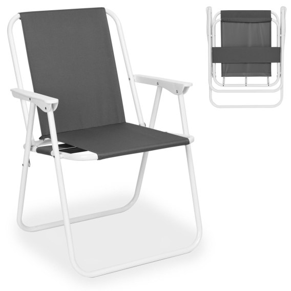 Wygodne i stabilne krzesełko turystyczne, idealne na działkę, plażę lub kemping. Fotel jest składany i po złożeniu zajmuje mało miejsca, dzięki czemu łatwo się go transportuje na miejsce wypoczynku. Wytrzymała konstrukcja została wykonana ze stalowych rurek malowanych proszkowo.
