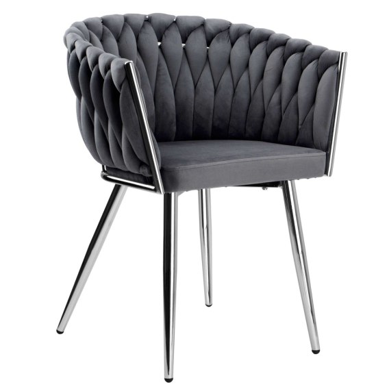 Krzesło welurowe plecione COFTON chrom VELVET grafitowy