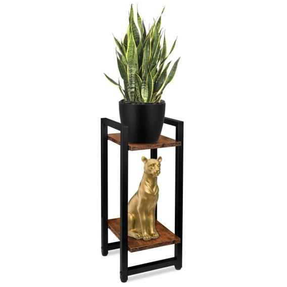 Lupin to solidny kwietnik wykonany ze stalowych profili malowanych proszkowo oraz płyt laminowanych w kolorze postarzanego dębu. Cechuje go proste wzornictwo i atrakcyjny design, który wpasuje się w każde nowocześnie urządzone pomieszczenie w stylu loftowym, klasycznym czy industrialnym. Kwietnik ma wytrzymałą stalową konstrukcję oraz 2 stabilne półki na kwiaty i dekoracje, nawet te o dużej wadze. Posiada u podstawy nóżki z regulacją wysokości. Wykonany z najwyższej jakości materiałów z zachowaniem dbałości o najdrobniejsze detale. Doskonale nadaje się do eksponowania kwiatów i pokazania ich wyjątkowych walorów. Lupin to wyjątkowy kwietnik, o solidnej konstrukcji i ciekawym wzornictwie, obok którego nie można przejść obojętnie.
