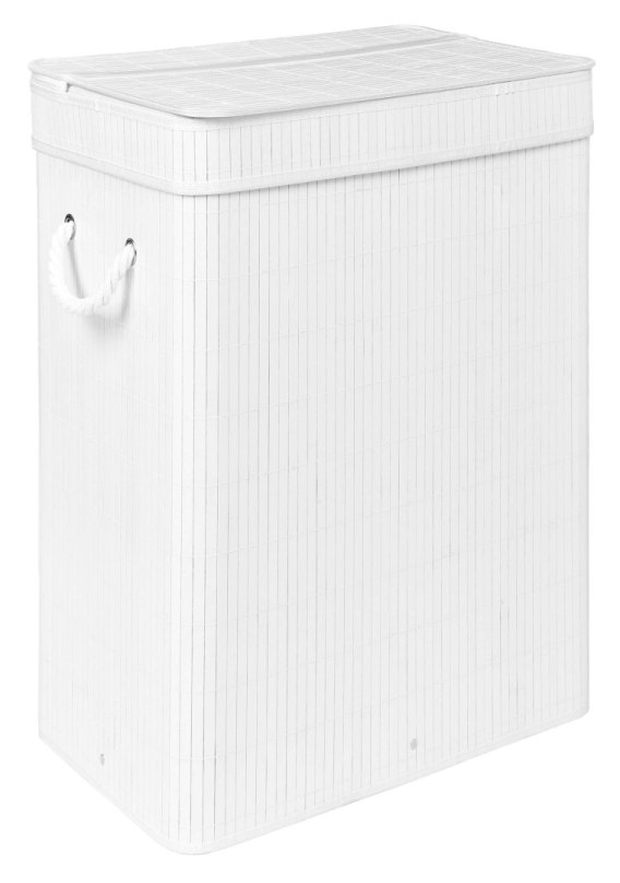 Kosz na pranie bambusowy z pokrywą SOREN 80L biały