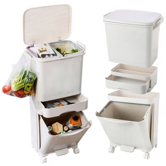 Każdy może się przyczynić do ochrony środowiska, zaczynając od właściwej segregacji śmieci. Jest to niezwykle ważne, byśmy żyli w zdrowym i czystym otoczeniu. Pomoże w tym nasz kosz do segregacji. Wykonany z materiałów najwyższej jakości z dbałością o najdrobniejsze szczegóły. Pokrywa górnego pojemnika posiada system automatycznego otwierania po naciśnięciu. Pojemnik jest dzielony na dwie komory z przegrodą i uchwytem mocującym worki na śmieci. Między dolnym a górnym pojemnikiem jest szuflada na worki na śmieci i potrzebne akcesoria. Dolny pojemnik o dużej pojemności z wygodnym pedałem posiada także obrotowe kółka ułatwiające korzystanie z kosza. Kosz niezwykle praktyczny i pojemny, doskonale sprawdzi się w każdej kuchni.