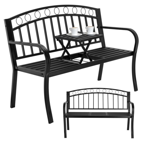 Ławka Banco to idealne połączenie nowoczesnego designu i funkcjonalności. Dzięki zintegrowanemu, rozkładanemu stolikowi możesz cieszyć się filiżanką kawy czy książką. Stalowa konstrukcja gwarantuje stabilność i trwałość, a klasyczna czerń wpisze się w każdą przestrzeń ogrodową lub tarasową.