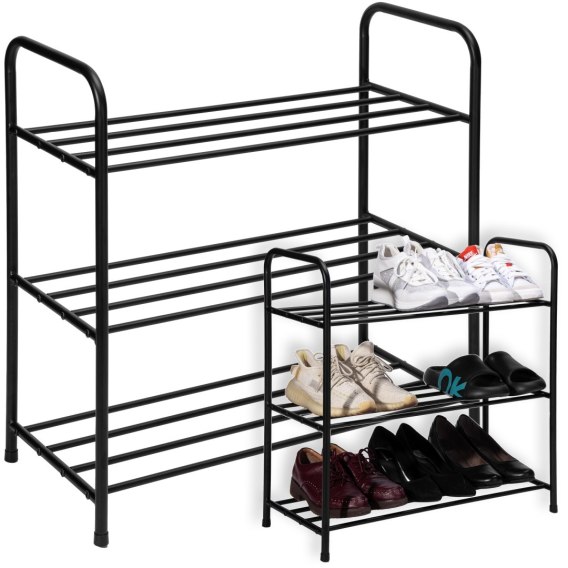 Elegancki i Funkcjonalny Regał na Buty, Czarny, 3-Poziomowy, Metalowy