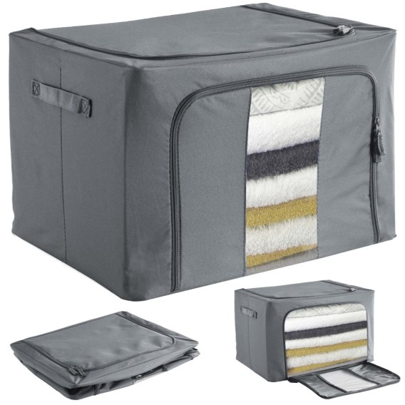 Organizer na pościel Evan to świetne rozwiązanie na zorganizowanie porządku w Twojej garderobie czy szafie. Doskonale sprawdzi się do przechowywania ręczników, pościeli i każdego rodzaju odzieży. Wykonany jest z materiałów najwyższej jakości, z zachowaniem dbałości o każdy detal. Organizer na odzież Evan posiada stalowy, solidny stelaż i usztywnienie na spodzie, dzięki czemu jest stabilny i wytrzymały, a ubrania chronione są przed zagnieceniami. Modułowa konstrukcja pozwala ustawiać kolejne organizery na sobie, dzięki czemu możemy tworzyć pionowe słupki wg własnych upodobań. Dodatkowo przednia ścianka posiada transparentne okienko, dzięki któremu szybko dostrzeżemy rzecz, której szukamy. Torba na ubrania Evan wykonana jest solidnego materiału Oxford 600D, dzięki czemu jest odporna na działanie wilgoci, chroni przed molami, kurzem, brudem i brzydkim zapachem. Evan to doskonały organizer na ubrania. Jest solidnie wykonany z wytrzymałego materiału, posiada stalowy stelaż, mocne zamki błyskawiczne, wygodne rączki do przenoszenia i okienko identyfikujące odzież. To praktyczne i estetyczne rozwiązanie do Twojej szafy. Dzięki dużej pojemności 60 litrów pojemnik jest w stanie zmieścić dużą ilość odzieży, ręczników czy kompletów pościeli.