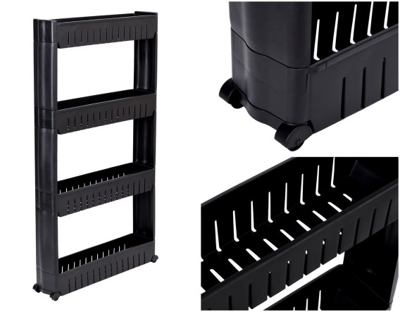 Mobilna szafka idealna do wąskich przestrzeni, takich jak kuchnia czy łazienka. Jej modułowa konstrukcja wykonana z wytrzymałego tworzywa umożliwia łatwe dopasowanie do potrzeb - półki można dodawać lub odejmować. Dzięki kompaktowym wymiarom doskonale sprawdzi się między szafką a lodówką, pralką czy w innych trudno dostępnych miejscach. Regał kuchenny świetnie nadaje się do przechowywania przypraw, akcesoriów kuchennych, kosmetyków, środków czystości i wielu innych niezbędnych rzeczy. Mobilność zapewniają cztery kółka, dzięki którym szafka łazienkowa na kółkach łatwo przemieszcza się tam, gdzie jest potrzebna.