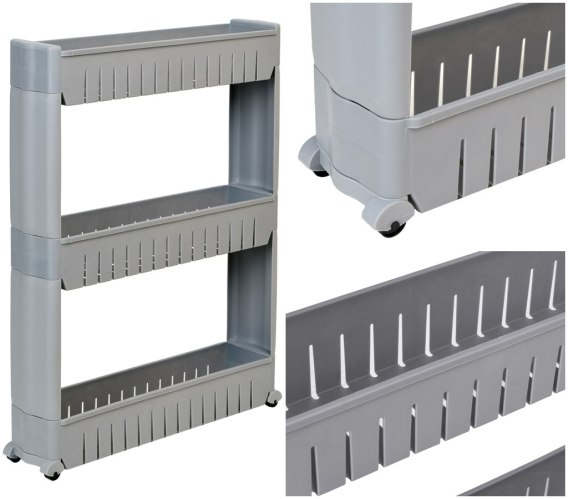 Mobilna szafka idealna do wąskich przestrzeni, takich jak kuchnia czy łazienka. Jej modułowa konstrukcja wykonana z wytrzymałego tworzywa umożliwia łatwe dopasowanie do potrzeb - półki można dodawać lub odejmować. Dzięki kompaktowym wymiarom doskonale sprawdzi się między szafką a lodówką, pralką czy w innych trudno dostępnych miejscach. Regał kuchenny świetnie nadaje się do przechowywania przypraw, akcesoriów kuchennych, kosmetyków, środków czystości i wielu innych niezbędnych rzeczy. Mobilność zapewniają cztery kółka, dzięki którym szafka łazienkowa na kółkach łatwo przemieszcza się tam, gdzie jest potrzebna.