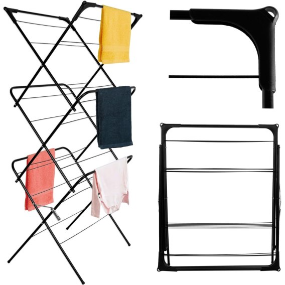Suszarka wykonana ze stali malowanej proszkowo oraz dodatków z tworzywa sztucznego. Suszarka po złożeniu zajmuje bardzo mało miejsca, rozkłada się w płaszczyźnie pionowej. W dolnej części posiada zabezpieczenia, blokady które uniemożliwiają samoistne złożenie się. Dzięki swoim gabarytom mieści się w wannie, kabinach prysznicowych. Można także używać jest na balkonie, jest odporna na działania warunków atmosferycznych. Jej waga to około 2kg, łatwo przenosić ją z miejsca na miejce. Aral może także pochwalić się dużym udźwigiem równomiernym tj. 15kg.