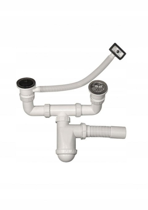 SYFON ZLEWOZMYWAKOWY 2 KOMOROWY - Z PRZELEWEM ELASTYCZNYM.