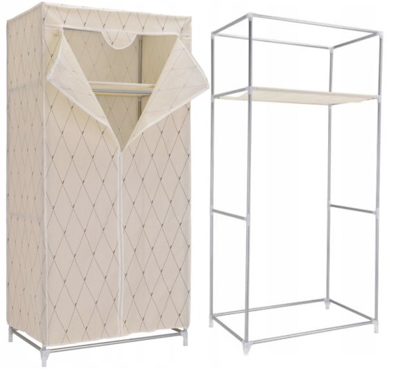 Szafa wykonana ze stalowych ramek tworzących jej szkielet. Na stelaż nałożony jest oddychający dobrej jakości materiał wraz z nadrukowanym widokiem. Jest łatwa do utrzymania czystości i praktyczna, półka idealnie nadaje się do przetrzymywania czapek, szalików, rękawiczek lub innych drobnych rzeczy. W głównej części szafy jest także możliwość zawieszenia ubrań na wieszakach. Lekka i solidna konstrukcja w dowolnej chwili możesz ją złożyć, przewieść, przestawić.