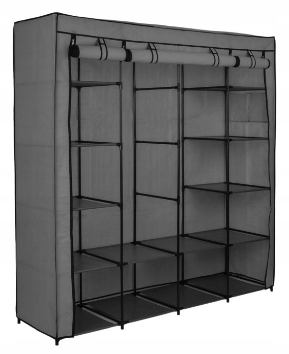 Lekkie szafy tekstylne to proste i ekonomiczne rozwiązanie problemu przechowywania odzieży. Szafy mają metalowy stelaż z łącznikami z tworzywa sztucznego, są proste i szybkie w montażu oraz dostępne w wielu modnych kolorach i wzorach. Materiałowa garderoba sprawdzi się też u osób często zmieniających miejsce zamieszkania - składa się ją w kilka minut. Dzięki zamkom błyskawicznym na froncie szafy, poszczególne części można otwierać i zamykać niezależnie.