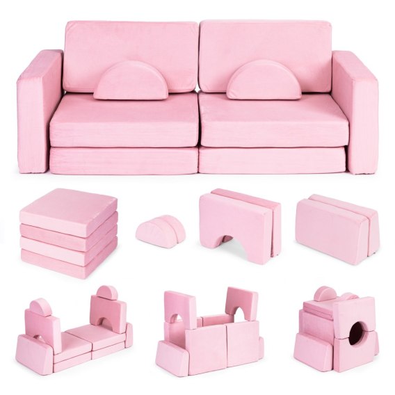 Sofa składana modułowa dla dzieci duża 2 osobowa DIY 10 miękkich poduch - różowa ECOTOYS