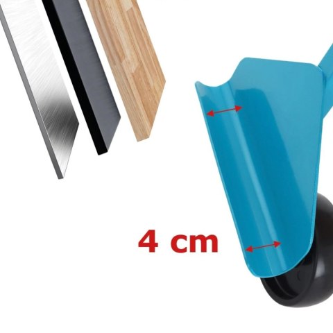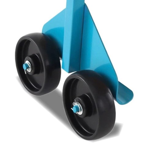 Dwa solidne koła z tworzywa zapewniają stabilność i łatwe manewrowanie.