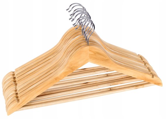 Wieszak Rondo wykonano z wysokiej jakości drewna. Został starannie wykończony i zabezpieczony farbą, dzięki czemu będzie doskonale prezentował się także w eleganckich butikach z luksusową odzieżą. W domowym zaciszu zadba o to, by Twoje ubrania nie zsuwały się, posiada bowiem specjalne wcięcia na ramionach. Dodatkowa poprzeczka pozwoli zawiesić dodatkowe elementy garderoby i zapobiegnie ich zagnieceniu. Hak wieszaka wykonano ze stali nierdzewnej, co znacząco wyróżnia go pod względem trwałości na tle konkurencji.