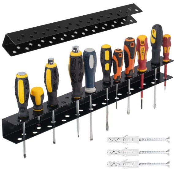 Wieszak na narzędzia marki Carmin to doskonałe rozwiązanie dla osób, które chcą utrzymać porządek i zoptymalizować organizację w warsztacie, garażu czy piwnicy. Dzięki wytrzymałej metalowej konstrukcji pokrytej czarną powłoką proszkową, wieszak jest nie tylko solidny, ale także stylowy, pasując do różnych przestrzeni. Pomieści aż 29 wkrętaków, zapewniając wygodny dostęp do narzędzi i lepsze zarządzanie miejscem pracy. Montaż na ścianie jest prosty, a zestaw zawiera wszystkie niezbędne elementy. Szyna ścienna Carmin zyskujesz porządek, oszczędność miejsca oraz lepszą organizację narzędzi.