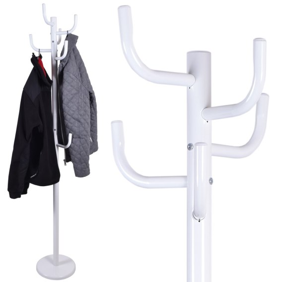 Nowoczesny wieszak do przedpokoju, hallu, poczekalni. Stabilna, metalowa konstrukcja o szerokiej podstawie pozwala zawiesić dużą liczbę kurtek i płaszczy.