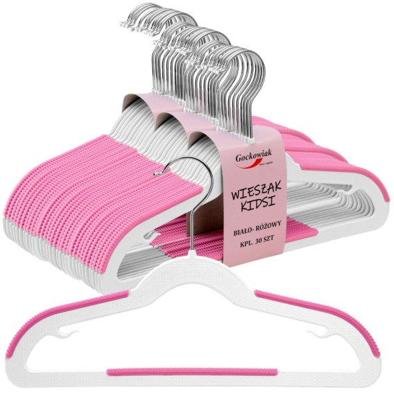 Wieszaki dziecięce KIDSI komplet 30 sztuk szaro-różowe