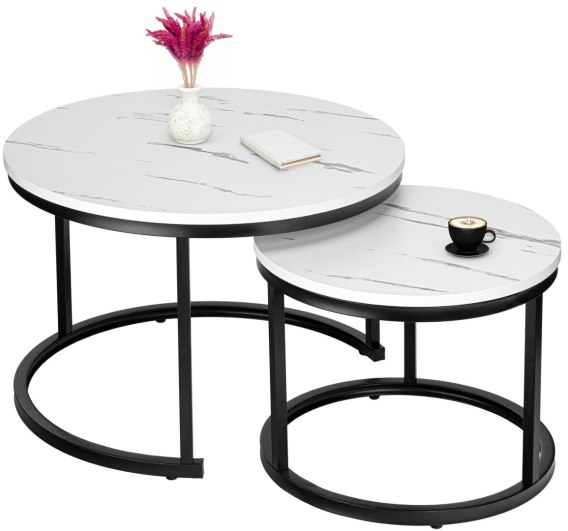 Zestaw stolików Galen Biały Marmur to połączenie nowoczesnego designu i wyjątkowej funkcjonalności, które idealnie wpasuje się w każde wnętrze. Dzięki kompaktowej konstrukcji i możliwości wsunięcia mniejszego stolika pod większy możesz zaoszczędzić przestrzeń, a jednocześnie cieszyć się eleganckim dodatkiem do swojego salonu. Możesz używać ich razem lub osobno, tworząc unikalne kompozycje. Zestaw stolików wykonany jest z solidnej metalowej konstrukcji, a maksymalne obciążenie jednego stolika to aż 75 kg. Galen to zestaw, który łączy estetykę z wygodą użytkowania - doskonały wybór dla wymagających!