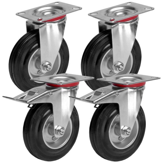 W pakiecie otrzymasz 4 kółka, w tym 2 z hamulcami, co zapewnia całkowitą kontrolę i stabilność mebli w miejscu ich ustawienia.